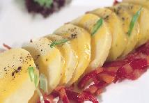 تحضر البطاطا تقشر وتقطع إلى مكعبات بحجم 2.5 سم. ترصف على مصبع موضوع فوق مياه مغلية وتغطى حتى تنضج خلال 20 دقيقة تقريباً (طريقة الطبخ على البخار)