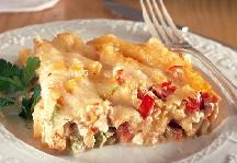يصب المزيج في طبق زجاجي مقاوم للحرارة أو في صينية ترش الجبنة فوق المزيج ويخبز لمدة 30 إلى 35 دقيقة في فرن حرارته 350 درجة فهرنهايت حتى تذوب الجبنة