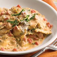 ضعي المعكرونة في أطباق التقديم واسكبي الصلصة فوقها بعد إضافة الملح والفلفل حسب الرغبة