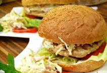 يدهن خبز الهمبرغر بالمايونيز بعد فتحها ثم توضع قطعة الخس و شريحتان من البندورة ثم توضع قطعة الهمبرغر وتضاف ملعقة سلطة ملفوف وتغلق الخبزة