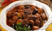 نسلق اللحمة بالماء مع عصير البندورة و حمض السماق و الدهن و بعد أن تقارب ثلاث أرباع النضج نضيف الباذنجان و ندعهم حتى تقارب استواء , عندها نضيف الثوم و النعناع اليابس و نحرك و بعدها نضيف أقراص الكبة المجهزة و المسلوقة مسبقاً و ندعهم مدة 5 دقائق تقريباً و تقدم