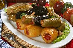 توضع بعض العظام في قعر القدر وترص المحاشي فوق بعضها مع وضع ثقل عليها