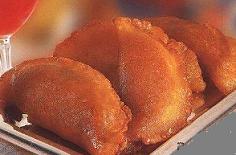 تغلق العجينة على شكل نصف دائرة وتضغط الأطراف بالأصابع