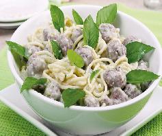 تخلط هذه الصلصة مع المعكرونة المسلوقة ثم تضاف إليها كرات اللحم
