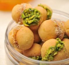 يُشكل العجين على هيئة كُرات صغيرة (في حجم البندق) مع الضغط الخفيف عليها، وتُرص في صاج فرن (مع مراعاة ترك مسافة بينها)
