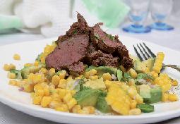 لحم البقر الحرّيف مع سلطة الذرة الطازجة