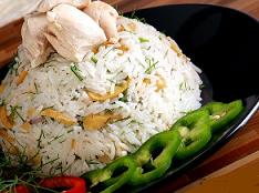 بعد 15 دقيقة تقريبا تضاف قطع الدجاج و الشبت و برش الليمون الحامض و عصيره و يتابع الطهي مدة خمس دقائق أخرى حتى يصبح لون الأرز أشقراً دون أن يستوي تماما ثم يضاف البهار حسب الرغبة