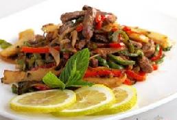 شرائح اللحم مع الأرضي شوكي والفليفلة