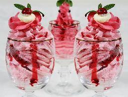 يسكب الموس في أكواب زجاجية طويلة ويترك في الثلاجة حتى يجمد تزين أكواب الموس بحبات الفراولة أو التوت الأحمر وتقدم