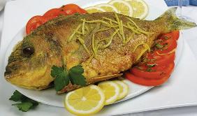يسخن الزيت أو السمنة تغلف السمكة بالدقيق وتقلى في الزيت حتى تستوي جيداً، ثم تصفى على محارم ورقية وتقدم ساخنة بعد تزيينها بالليمون الحامض والبقدونس