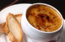 عند التقديم، يُصبّ الحساء ويُغطّى بالخبز الفرنسيّ وصنفي الجبن. ويحمّر في الفرن حتّى تكوّن الجبنة قشرة ذهبية