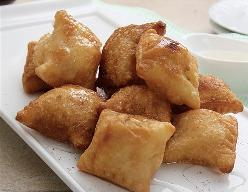 تحمى كمية كافية من الزيت في مقلاة عميقة وتقلى فيه رقاقات الجبنة حتى تنتفخ وتشقرّ