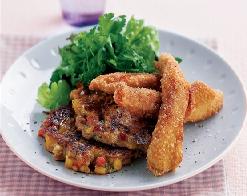 تخلط كل المكونات مع بعضها في وعاء. يقسم المزيج إلى 8 أقراص ويقلى قرصان كل مرة في مقلاة غير لاصقة