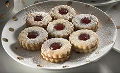 ضعي قليلاً من المربى على سطح قرص البسكويت، وضعي فوقه قطعة من البسكويت المفرغ من الوسط