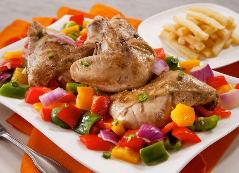 قدّمي الدجاج مع البطاطا المقلية، أو الخضَر المشويّة