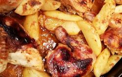 في صينية فرن كبيرة تضاف قطع الدجاج ويضاف لها نصف كمية الخليط ويوزع على قطع الدجاج جيدا