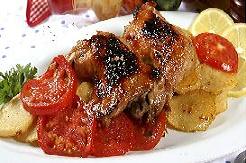 توضع البطاطا في صينية خاصة بالفرن على أن تشكل الطبقة الأولى ثم توزع شرائح البندورة ومن ثم البصل وأخيراً تضاف قطع الدجاج على الوجه