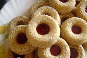 نقوم بعمل كريات متساوية نمرر الكريات في السمسم ونغمسها جيدا