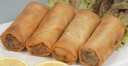 تؤخذ أوراق السمبوسة وتلف على شكل طولي أو مثلث وتغلق