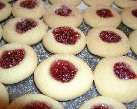 ثم بطرف ملعقة الخشب نعمل حفرة على كل كرة ونحشيها بالمربى