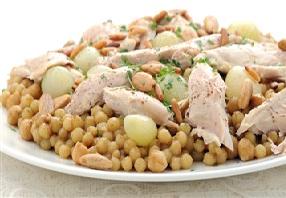 يزين الطبق باللوز والصنوبر المحمص ورشة بقدونس مفروم