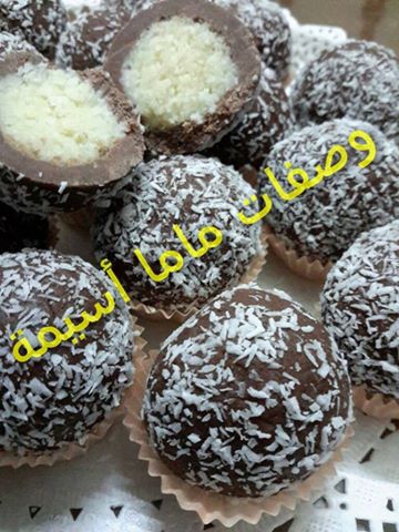 يخرج الجزء الأبيض من الثلاجة، وتشكل كرات صغيرة كم تشكل خليط البسكويت إلى كرات وتوضع بداخلها الكرات البيض وتشكل دوائر وتدحرج في جوز الهند