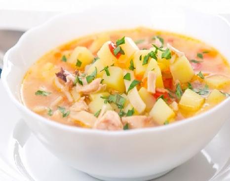 تقشر الكوسا والجزر والبطاطا وتغسل وتقطع إلى مكعبات صغيرة. يسلق كل نوع من الخضراوات على حدة لمدة حوالي 5 دقائق حتى تصبح نصف سواء. تخلط البندورة في الخلاط مع ¼ كوب ماء