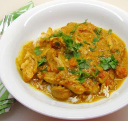 في وعاء مستقل، يخلط كوب من مرق الدجاج مع النشاء، الكاري والملح