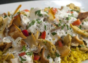 ثم تقطع البندورة والبصل الى مكعبات صغيرة وتضاف الى الشاورما وتطفئ النار