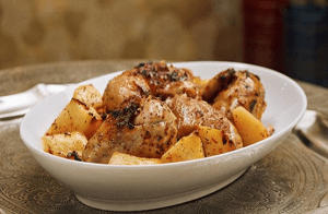 يرفع الدجاج من الفرن بعد مرور 30 إلى 40 دقيقة أو بعد أن ينضج