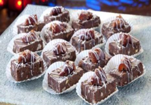 ذوبي شوكولا بيضاء و رشيها بشكل خطوط على المكعبات