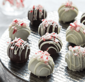 نقوم بتكوير الأوريو ونغمسها في الشوكولا البيضاء والغامقة الذائبة وتزين حسب الرغبة