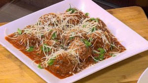 تحشى كرات اللحم بقطع من الجبن الموتزاريلا