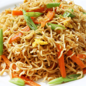أضيفي النودلز وقلبي لمدة دقيقتين ثم أطفئي النار واسكبيه في أطباق وقدميه ساخناً