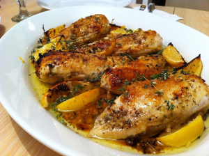 اخلطي عصير الليمون الحامض مع الثوم والزيت والملح جيدا وبعد ذلك قومي بسكبه من فوق الدجاج في الصينية