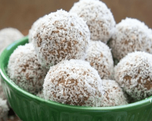ضعي باقي كمية جوز الهند في طبق، اصنعي كرات من المزيج ودحرجيها في جوز الهند حتى تغطيها ثم قدّميها
