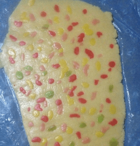 (يمكنك تلوين بعض العجينة بملونات غدائية و عملها كما في الصور لتحصلي على سابليه ملون)
