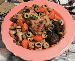 طاجن الزيتون بالدجاج و كويرات اللحم المفروم