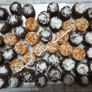 نذيب الشوكولا ونضيفها على الخليط ونرفع الوعاء من النار ونحرك جيدا ث نضيف المكسرات ونخلط وفي الآخر نضيف جوز الهند بالتديج ونحرك حتى يختلط جيدا