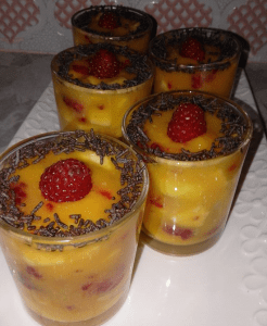 يصب الخليط في كؤوس التقديم و يزين حسب الرغبة