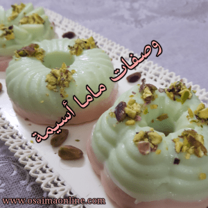 نخلط المقادير على البارد دون القشطة ثم نضع لون أخضر ونكهة الفستق وترفع على النار مع التحريك المستمر حتى تتماسك ثم نضيف القشطة ونخلط جيدا