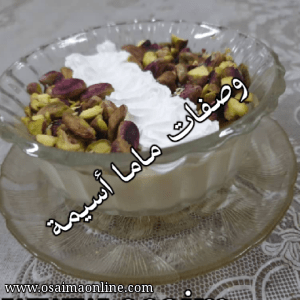 تزين عند التقديم بالكريمة واللوز والفستق أو حسب الرغبة