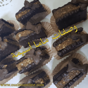 نجهر مول سيليكون قطع مستطيلة (حسب القالب الموجود) ونضع طبقة من الشوكولا في كل مستطيل ويبرد