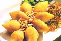 ثم نضيف الدجاج المقطع أصابع (المسلوق) و الفليفلة و الكزبرة وتملح وتبهر وتقلب لمدة 5 دقائق وتصبح الحشوة جاهزة