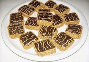 ثم نملأها بالشوكولا المذابة ونزينها بالشوكولا على شكل خطوط