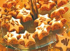 صفي النجوم في صفيحة فرن وادهنيها بواسطة مزيج بياض البيض، انخلي بودرة الكاكاو وأضيفيها إلى باقي بياض البيض واخلطي وضعي المزيج في جيب حلواني واخلطي واصنعي أشكالا هندسية
