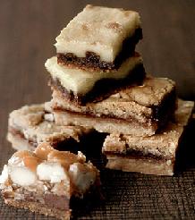 صفي قطع الحلوى في صفيحة مدهونة بالزبدة وأدخليها إلى فرن متوسط الحرارة حتى تنضج