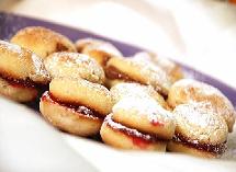 توضع في صينية الخبز، مع ترك حيّز فيما بينها ، ثم تضغط إلى الأسفل حتى تتسطّح قليلاً وتحشى كل قطعة بحوالي نصف ملعقة من المربى