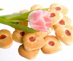 وأخيراً تخبز قلوب الحب في الفرن لمدة 12- 15 دقيقة ويمكن تزيين البسكويت بدهن سطح البسكويت بمربى الفراولة