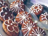 امزجي السكر والماء، أفرغي المزيج في كيس حلواني واصنعي نقوشا هندسية فوق البسكويتات